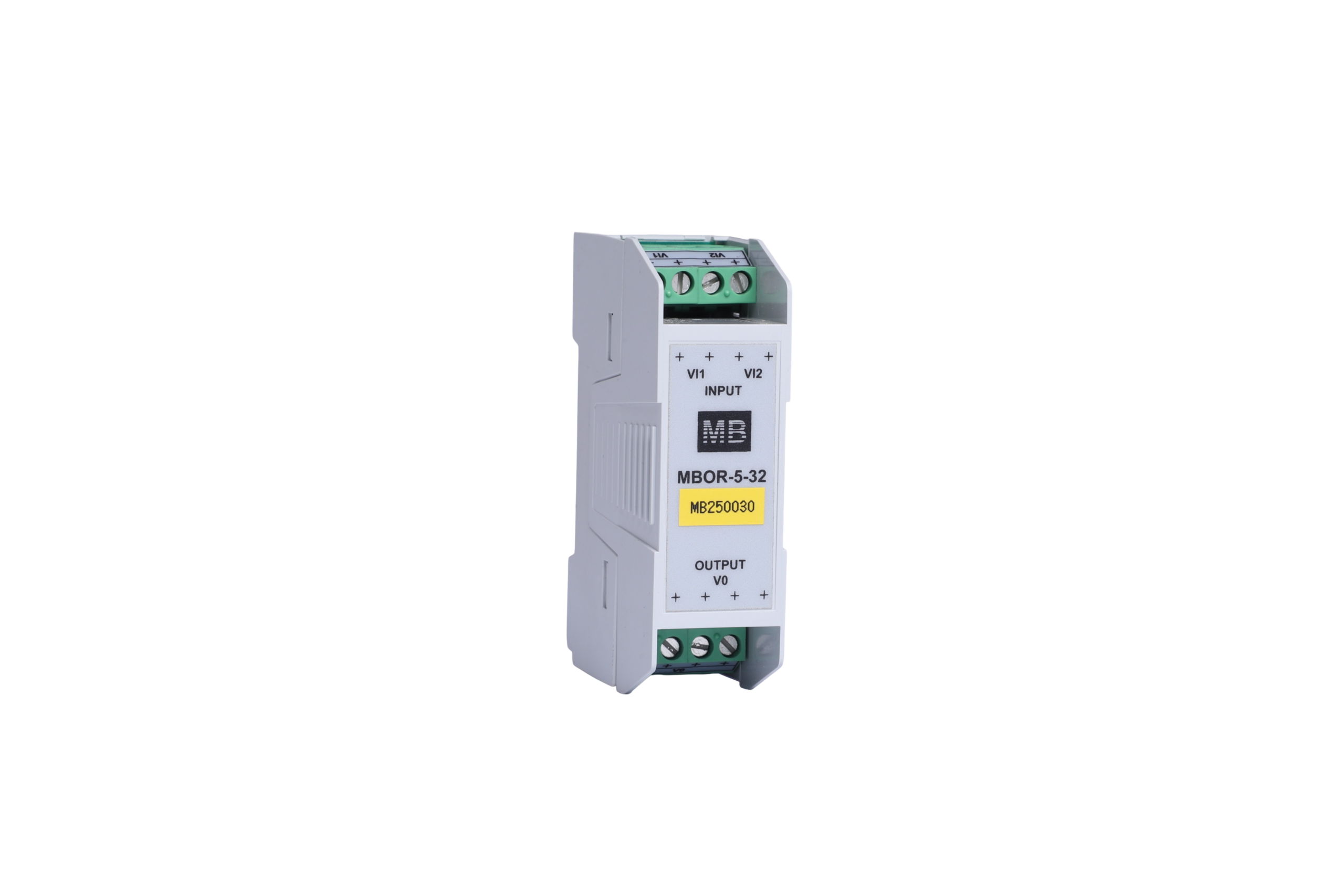 Housed in a durable ABS enclosure, the MBOR-5-32 features a compact DIN-rail mountable design with a linear pin layout. Phoenix screw-type connectors with tension sleeves ensure secure and reliable electrical connections, making it suitable for demanding industrial environments.