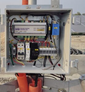 Real-time measurement of meteorological and solar parameters supports performance evaluation, generation forecasting, and long-term optimization. The system is powered by the MBLogger 1000 Pro, supported by the MBRS-205 communication module. Atmospheric and temperature parameters are monitored using the MBMet 901, MBMet 803, and MBMet 700 Soiling Monitoring System . Solar irradiance data is captured using the MS-80SH+ and SMP10 Pyranometer, while wind and rainfall are measured using the Davis 6410 and Davis 6466 sensors.